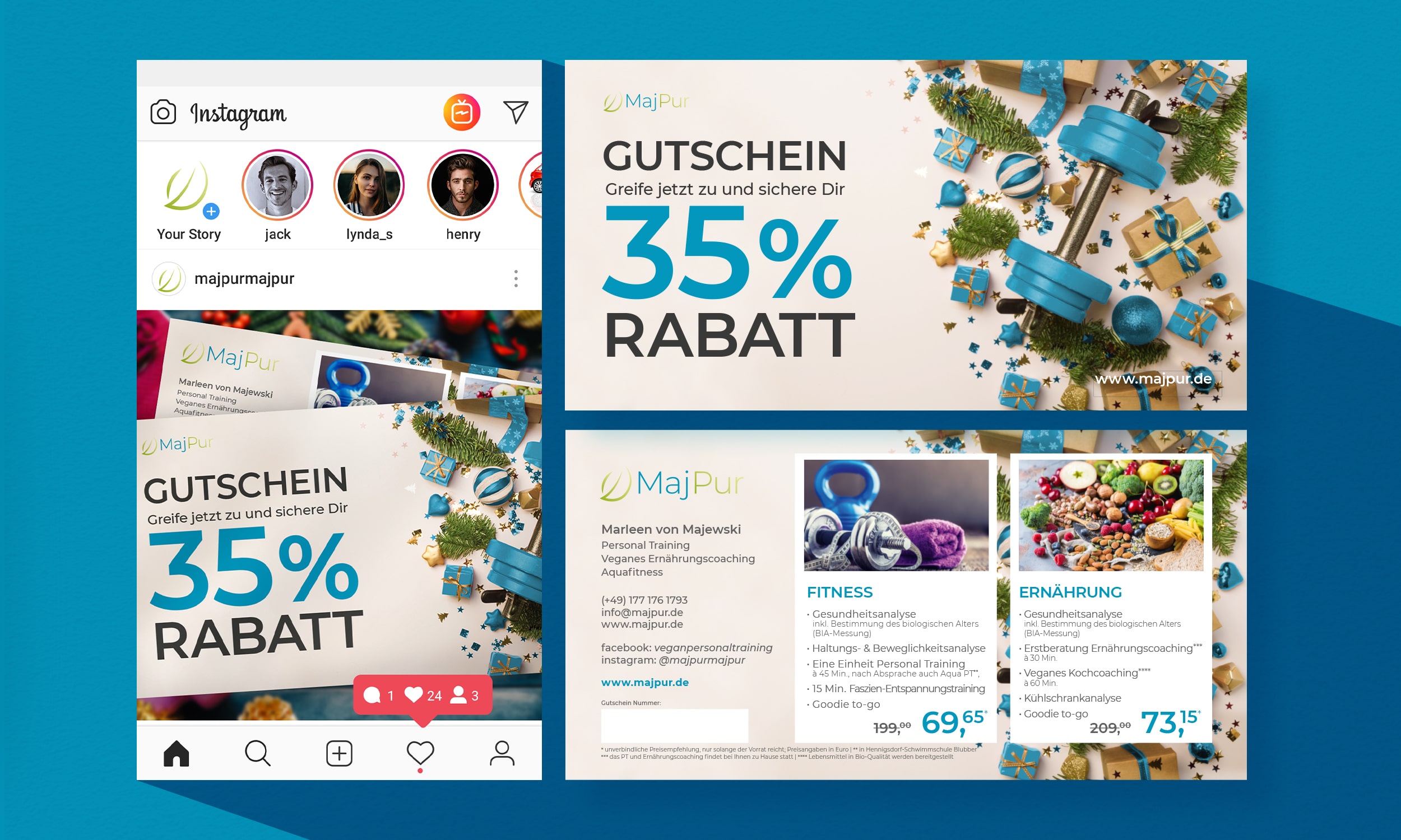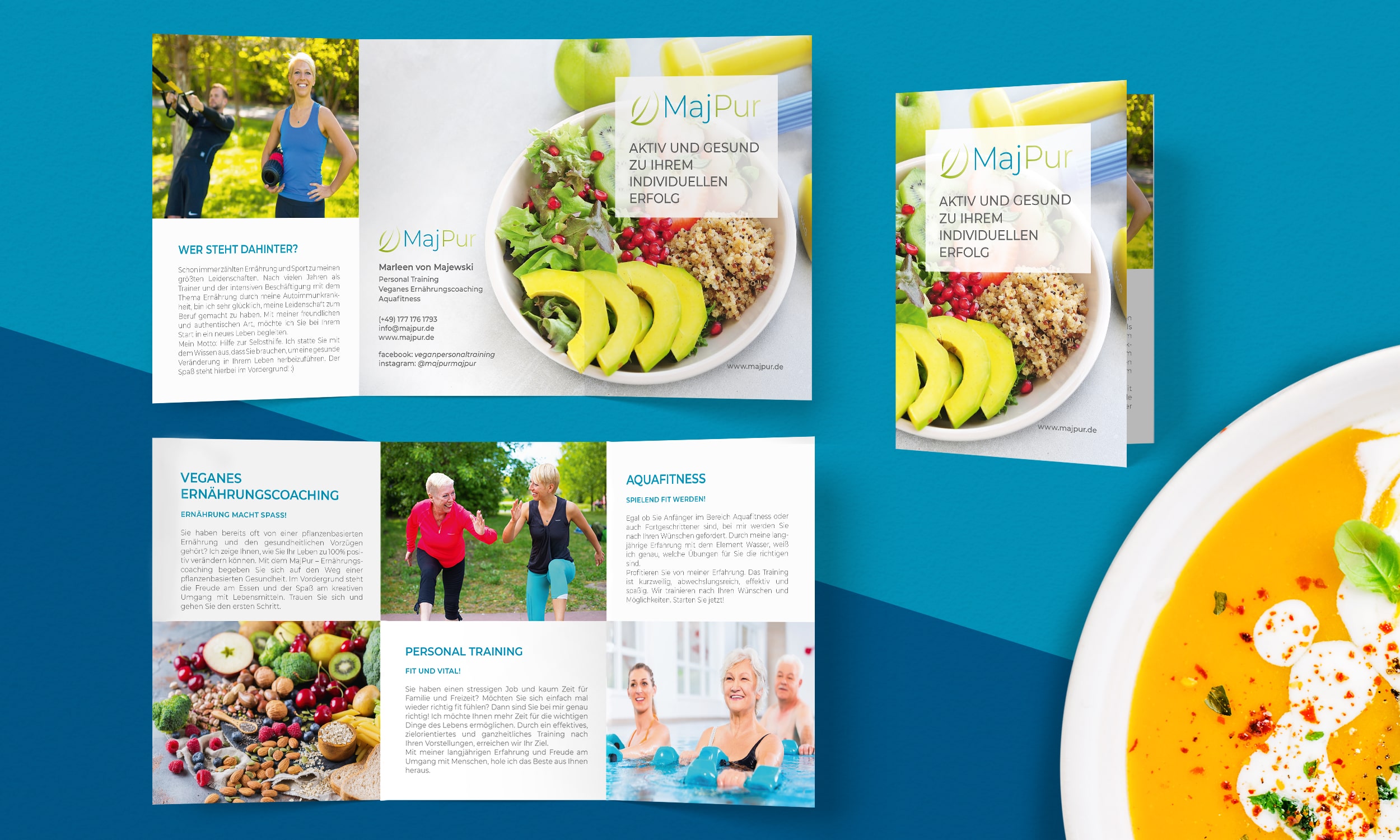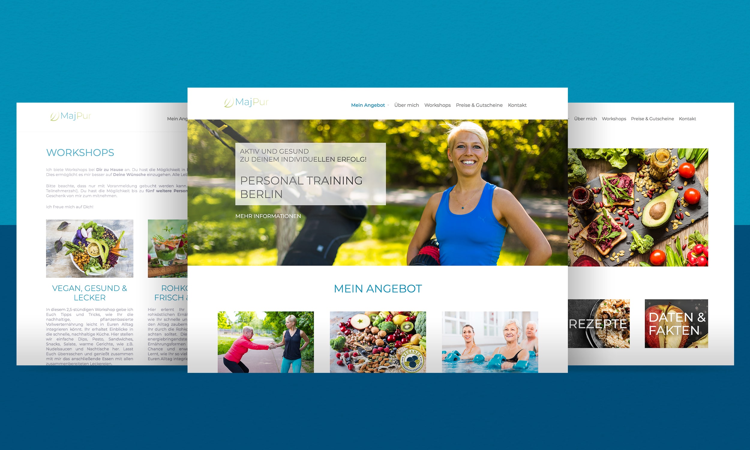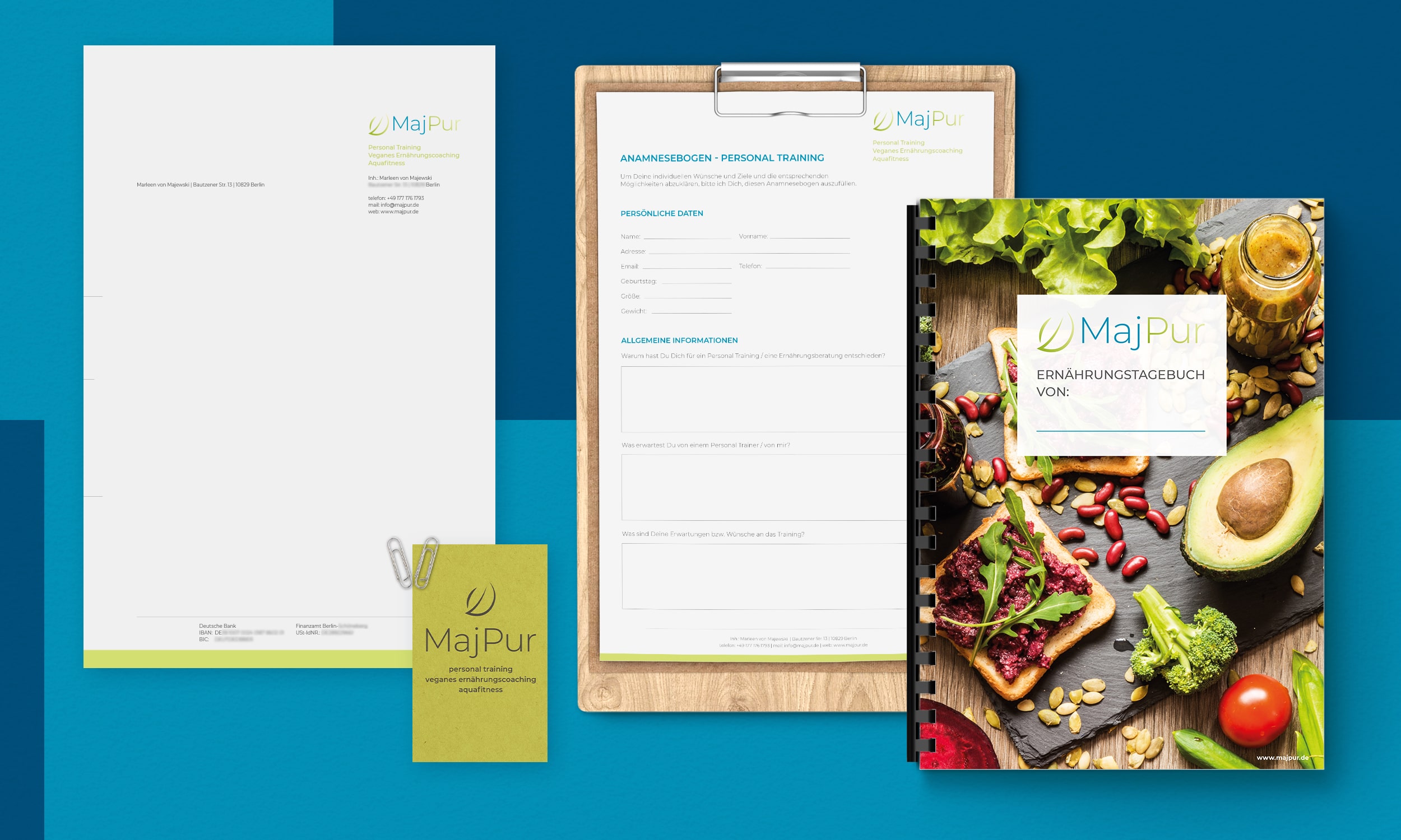 Die Marke Majpur vermittelt Nachhaltigkeit, Achtsamkeit und Leichtigkeit, was ich in ein visuelles Erscheinungsbild übersetzt habe. Der Projektumfang umfasste die Logoentwicklung, die Erstellung einer WordPress Website sowie diverse Printmedien (Geschäftsausstattung + Werbemittel). Hinter Majpur steht die Berliner Unternehmerin Marleen von Majewski, die sich auf Personal Training, Aqua Fitness und nachhaltiges Ernährungscoaching spezialisiert hat.